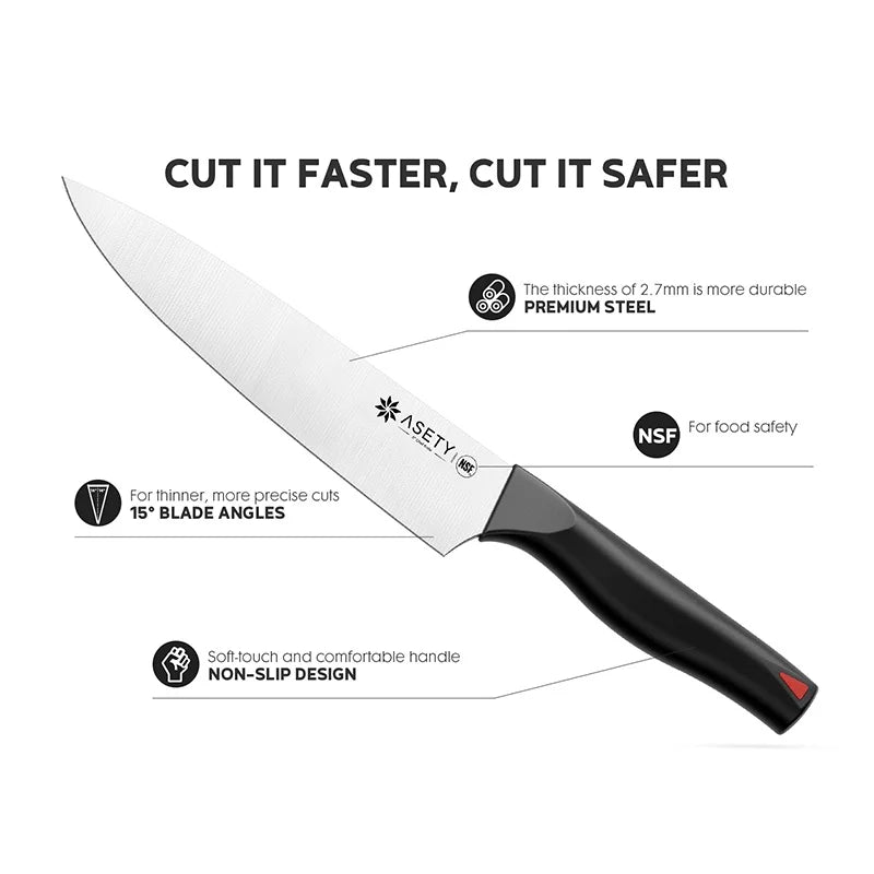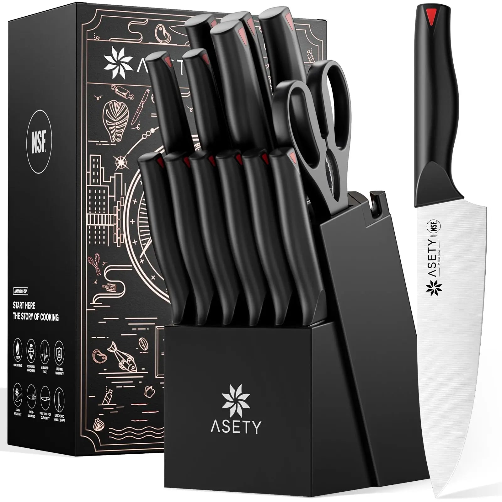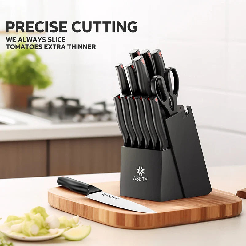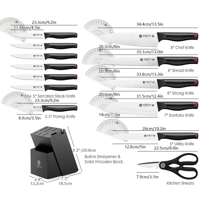 15 PCS Kitchen knife Set with Bulti-in Sharpener Block - Stainless Steel Knife Block Set - Dishwasher Safe Knives Sets