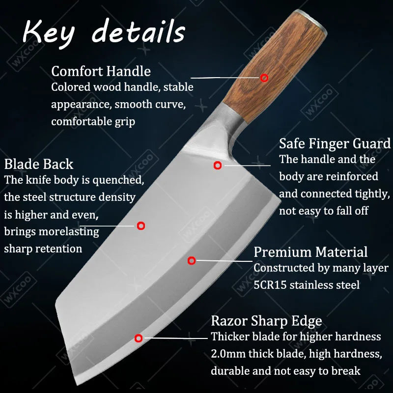 3.V shaped cutting edge, very sharp hand forging process, cutting handy.