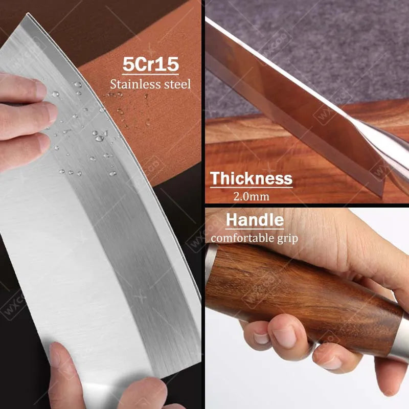 2.One-piece blade, not easy to break, ergonomic wooden handle,stainless steel handle, comfortable grip.
