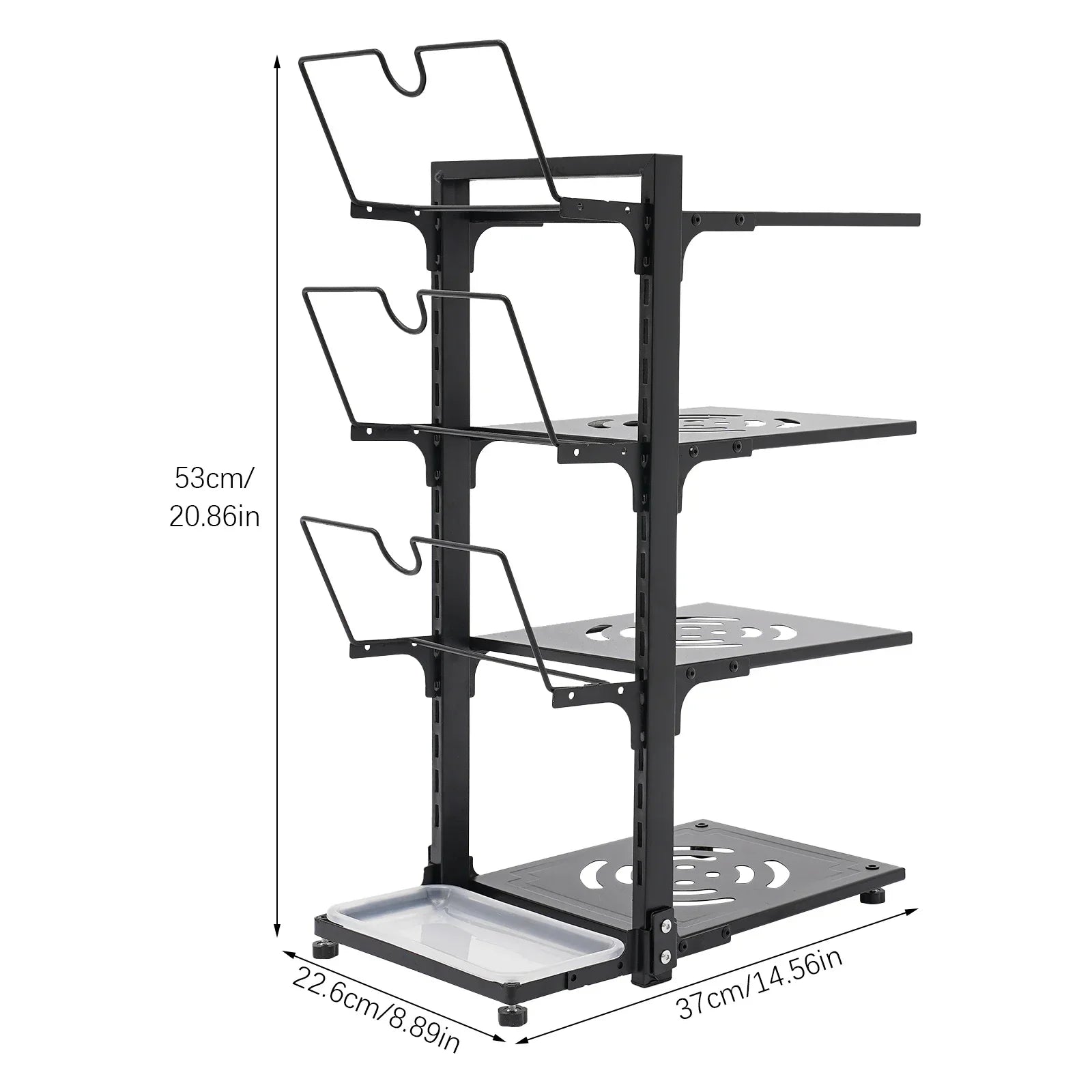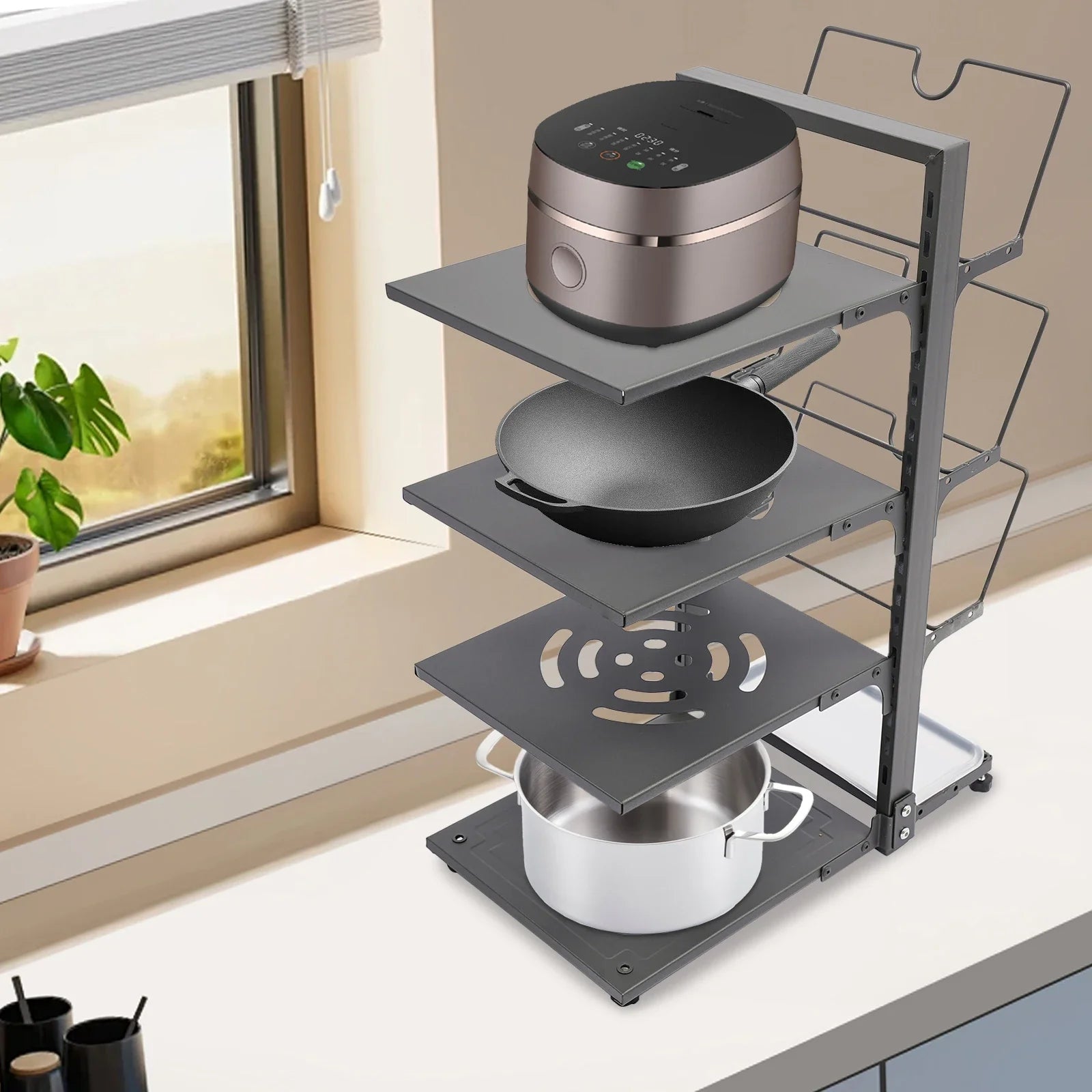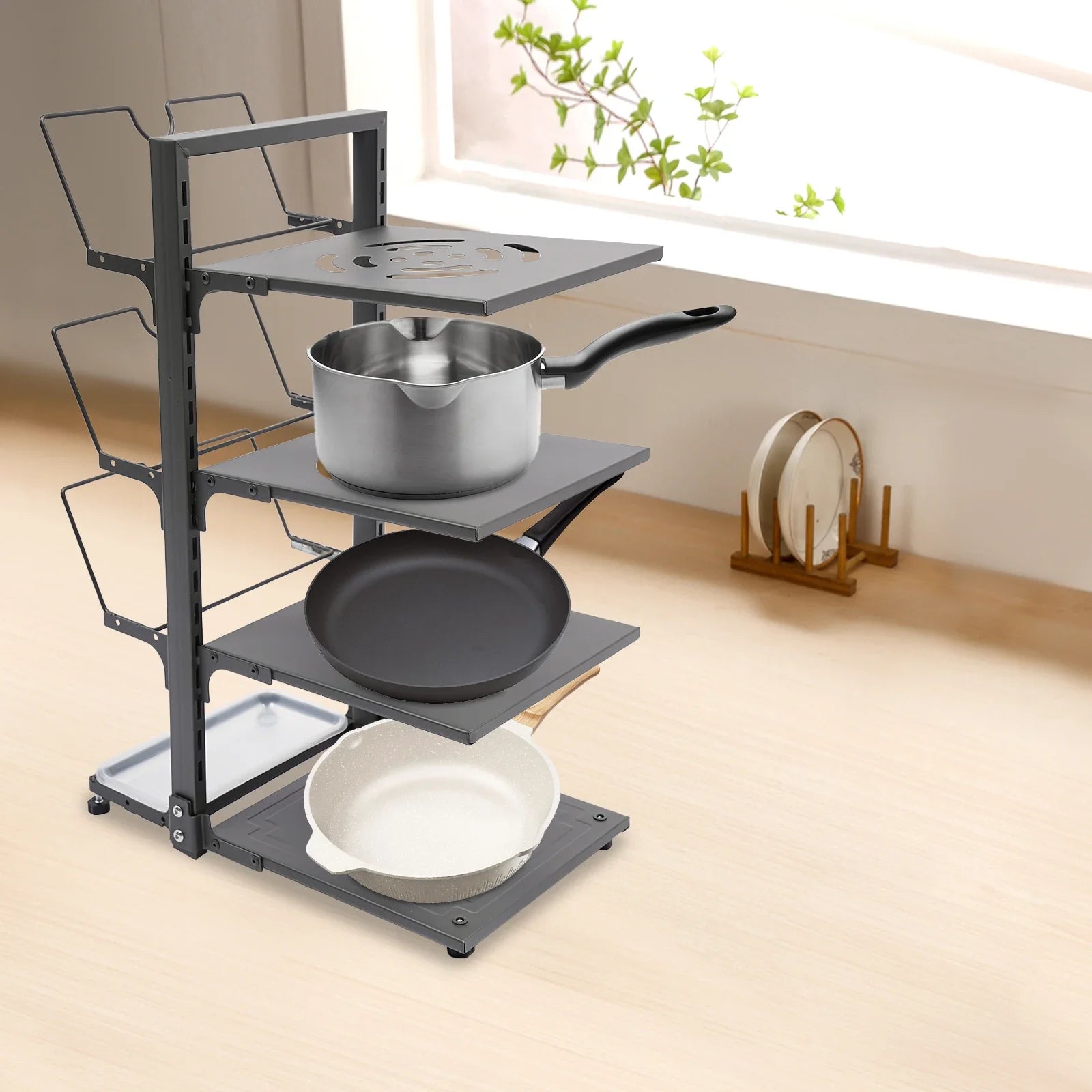 4-Tier Pot Organizer 22.05lbs per Tier Carbon Steel Pot Pan Lid Organizer 14.578.920.87in Kitchen Storage Grey/Black Adjustable