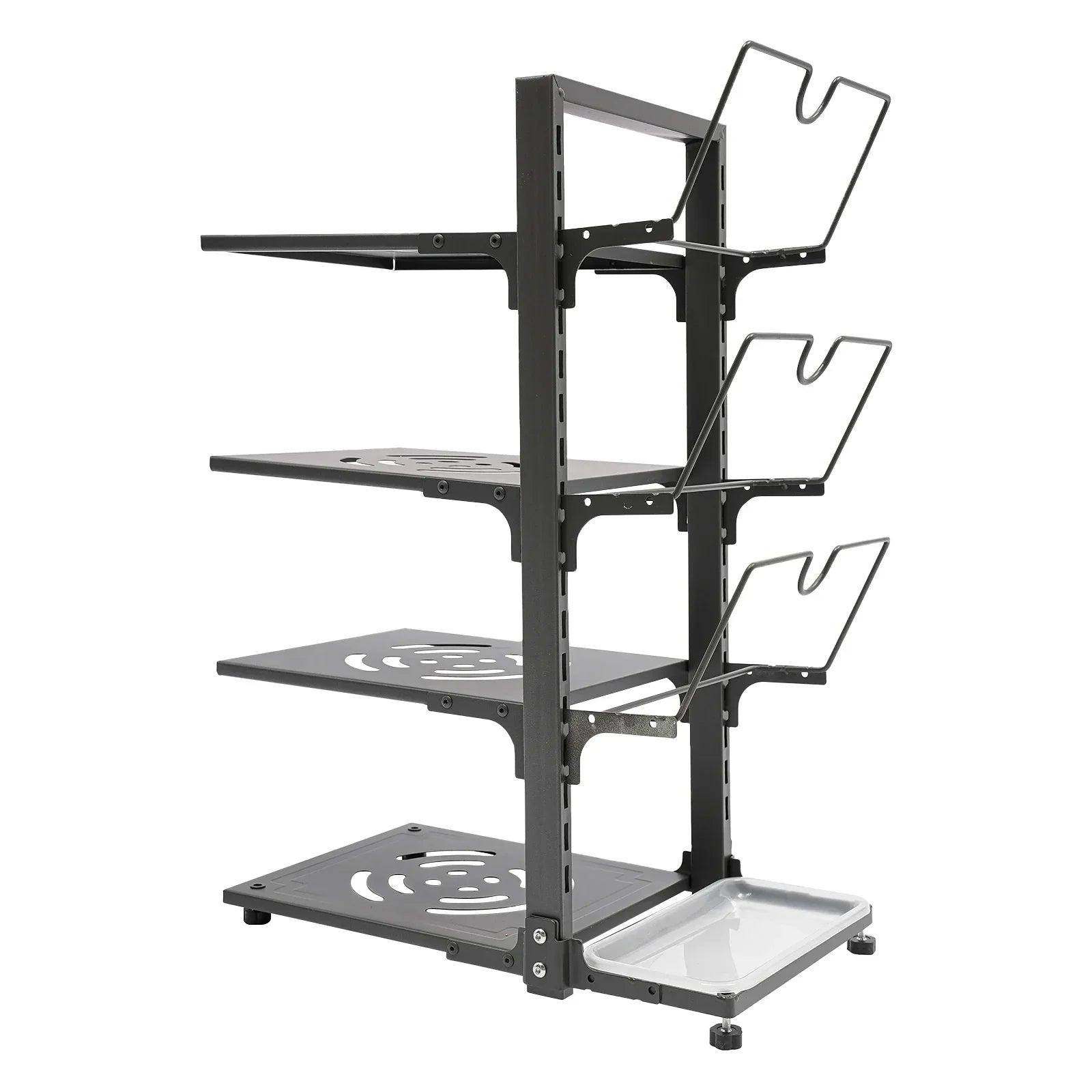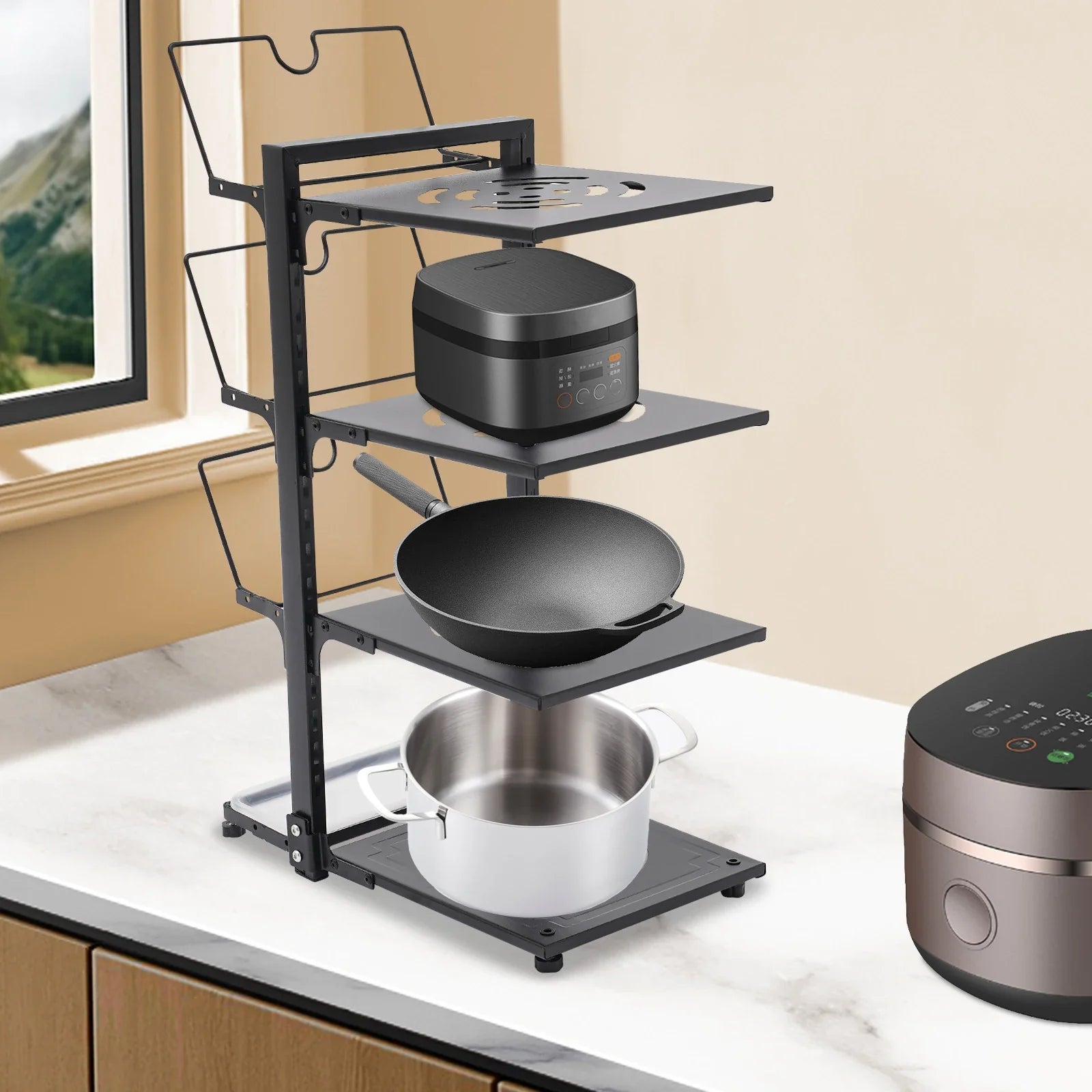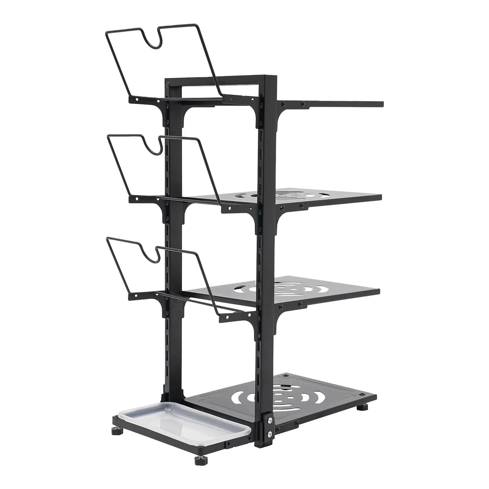 4-Tier Pot Organizer 22.05lbs per Tier Carbon Steel Pot Pan Lid Organizer 14.578.920.87in Kitchen Storage Grey/Black Adjustable